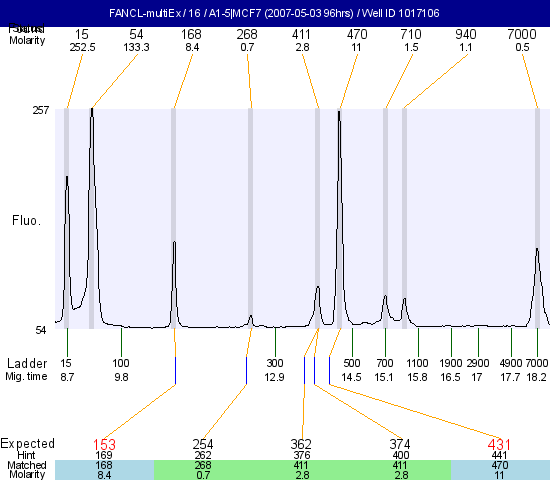 Fluorescence graphs : FANCL-multiEx / 16 / A1-5|MCF7 (2007-05-03 96hrs) / Well ID 1017106