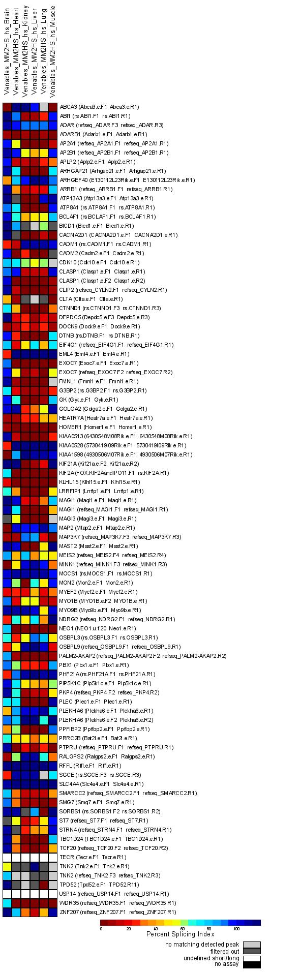 3. Human orthologs to mouse brain-specific, 93 exons, 6 human tissues