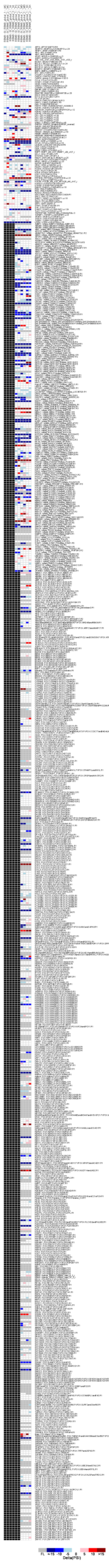 This page contains a heatmap showing all the data in 5 cell lines (MCF7, NIH-OVCAR-3, PC-3, MDA-MB-231 and SKOV-3ip1) for Fox2 knockdowns with two siRNAs. Each square shows a shift in splicing of >5-15% (knockdown minus control) see colour key at bottom. White means the ASE was active but no shift was observed in the knockdown. Grey means the ASE was inactive (i.e. only one peak or no peak was observed). Click on any square to see raw electropherograms for that primer pair or clicking on the primer pair name will provide the same plus a bar chart representing the raw psi values for knockdowns and controls.