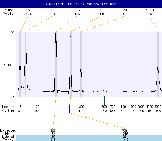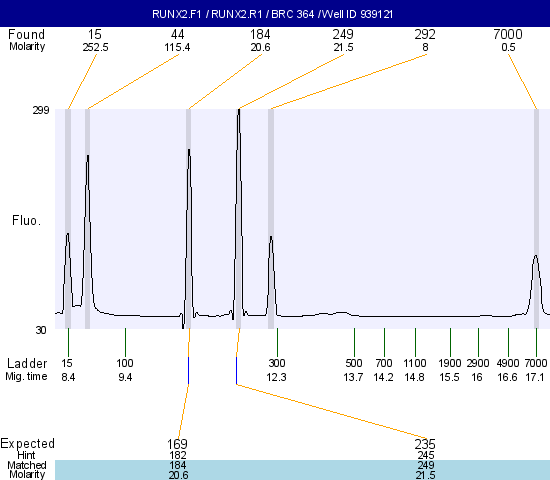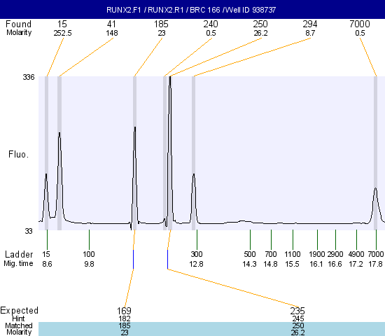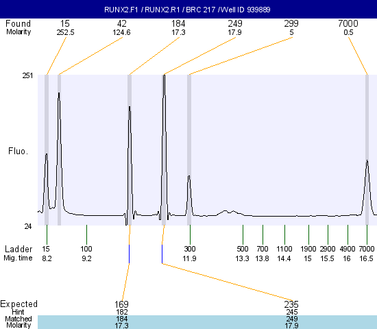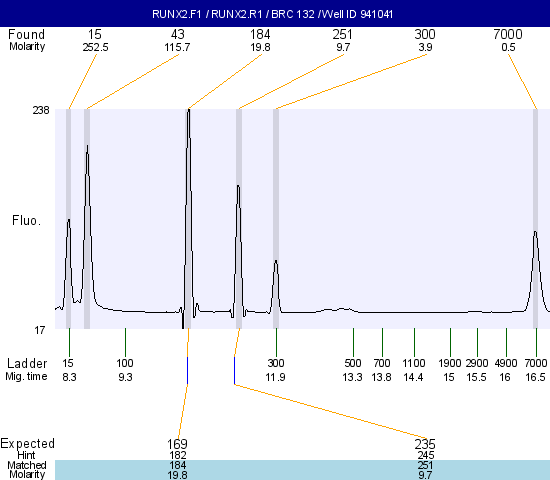 Targets single exon skipping with size difference of 66Short product(s): 169Long product(s): 235Isoform sequences