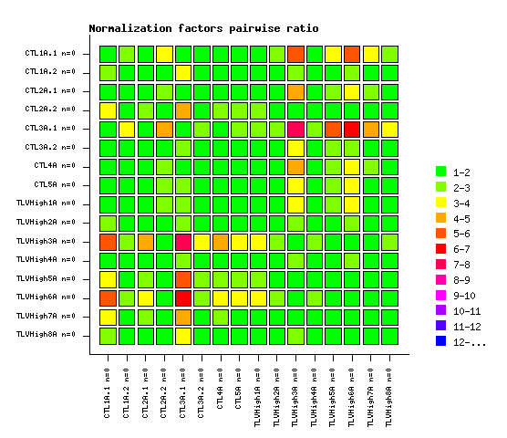 QPCR Relative Expression Quantification (TLV-High-1 Anterior) : NF pairwise ratio map