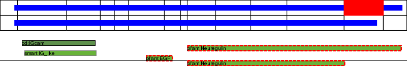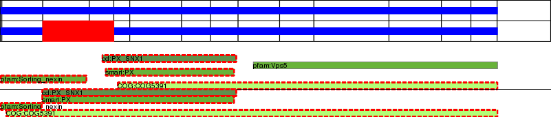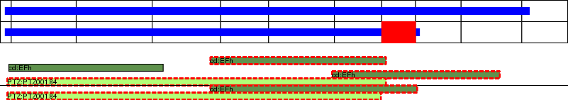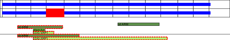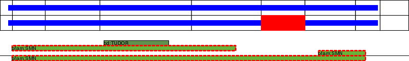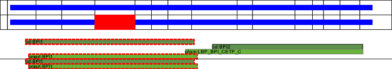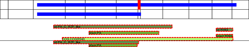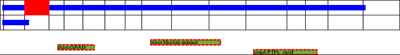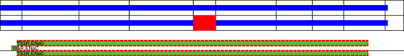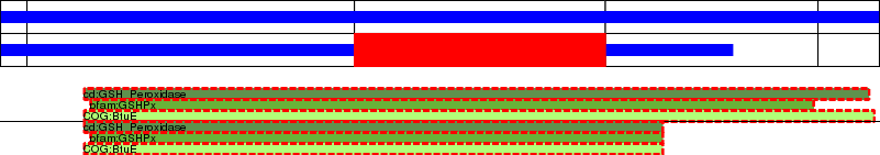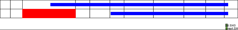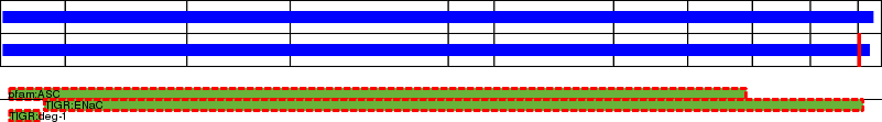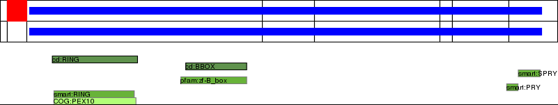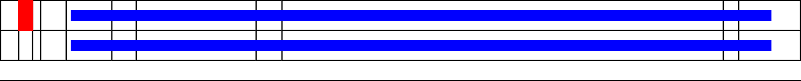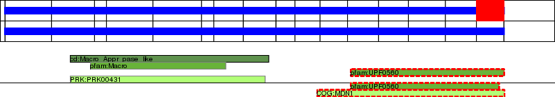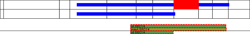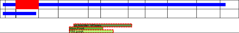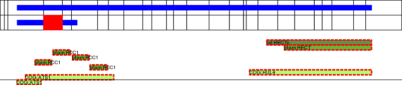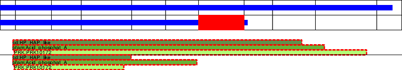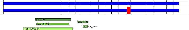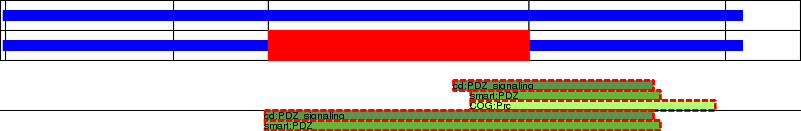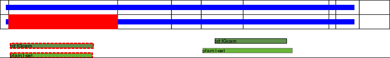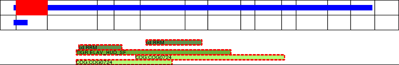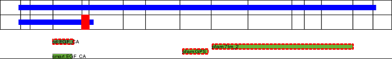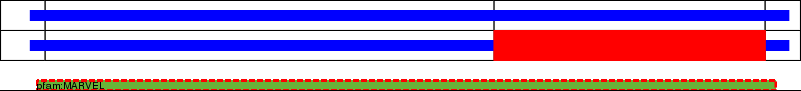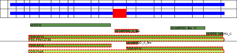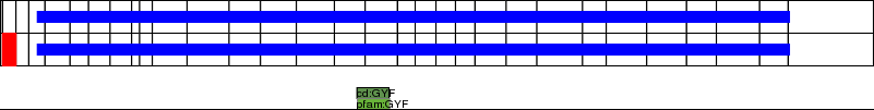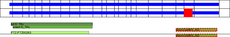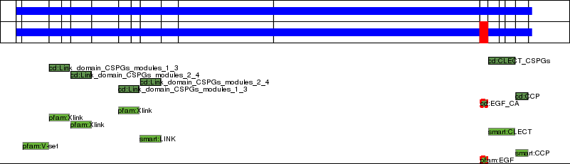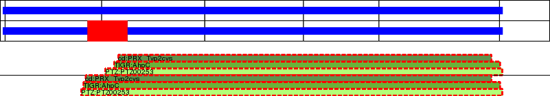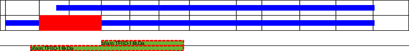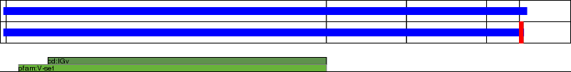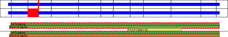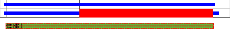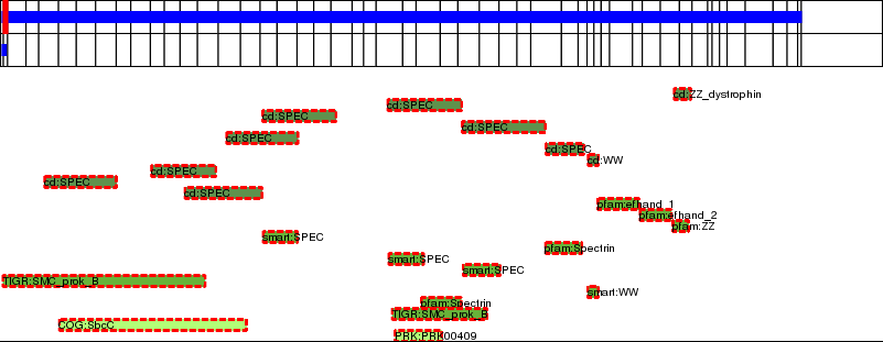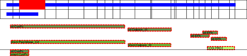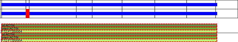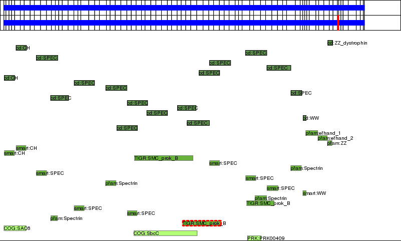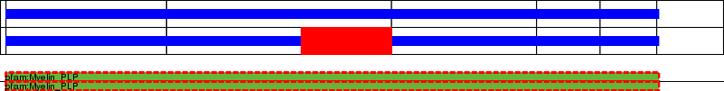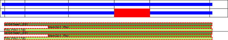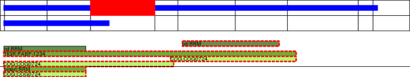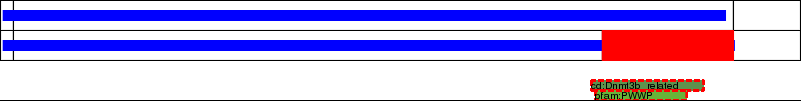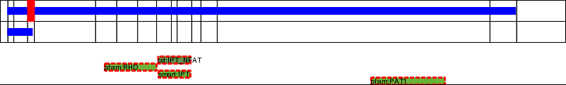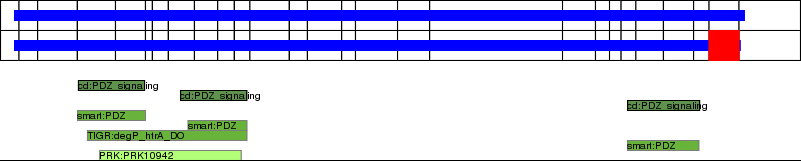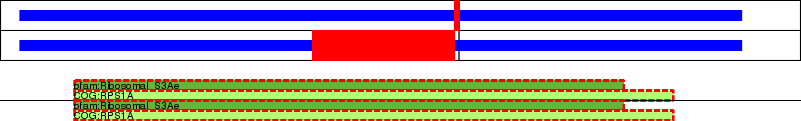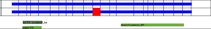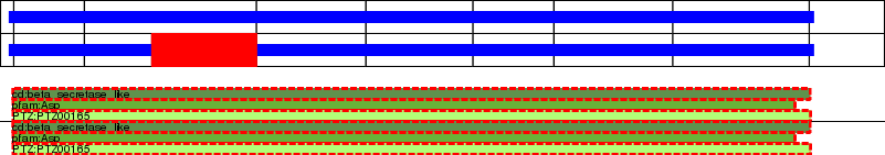 This page contains ASEs represented as a graph of the mRNA exonic structure mapped to the protein primary sequence. Exons are shown in white with black outline. The reference form is represented above the alternative form. Coding regions are shown with blue horizontal bars. These can be interrupted by red blocks for absent regions. Below are the domains in the protein obtained from NCBI's Conserved Domain Database. Domains that are affected by the ASE are outlined in red.