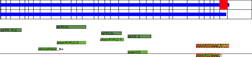 Pleckstrin homology domain. Domain commonly found in eukaryotic signalling proteins. The domain family possesses multiple functions including the abilities to bind inositol phosphates, and various proteins. PH domains have been found to possess inserted domains (such as in PLC gamma, syntrophins) and to be inserted within other domains. Mutations in Brutons tyrosine kinase (Btk) within its PH domain cause X-linked agammaglobulinaemia (XLA) in patients. Point mutations cluster into the positively charged end of the molecule around the predicted binding site for phosphatidylinositol lipids.