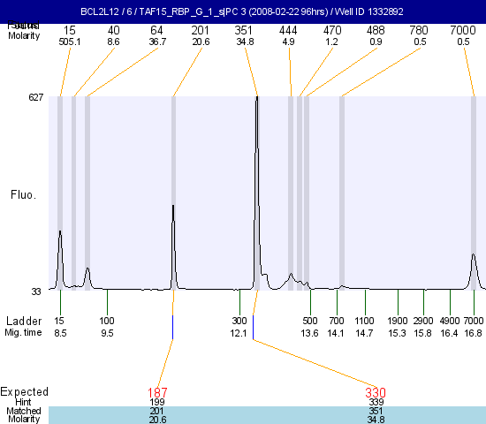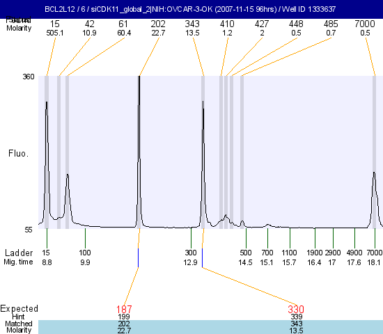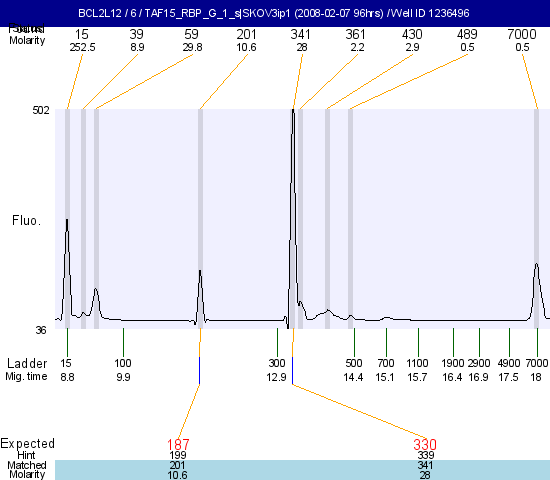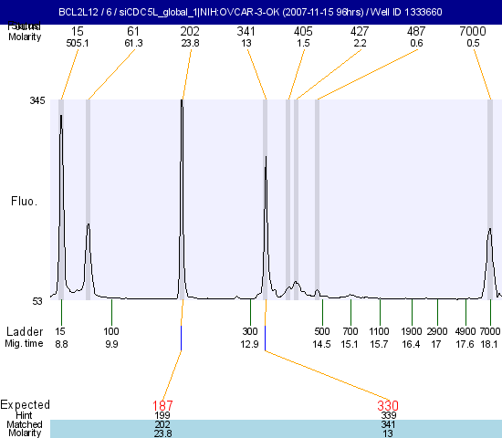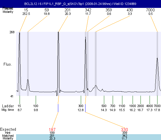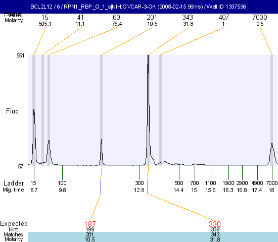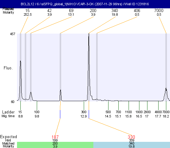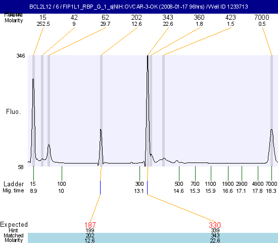 Fluorescence graphs : BCL2L12 / 6 / FIP1L1_RBP_G_1_s|NIH:OVCAR-3-OK (2008-01-17 96hrs) / Well ID 1233713