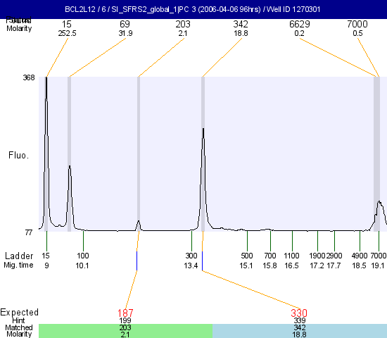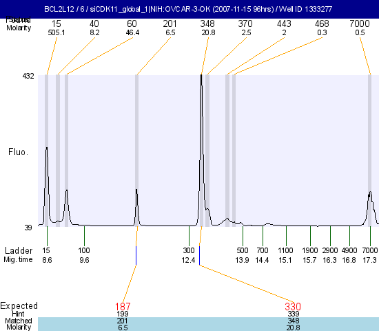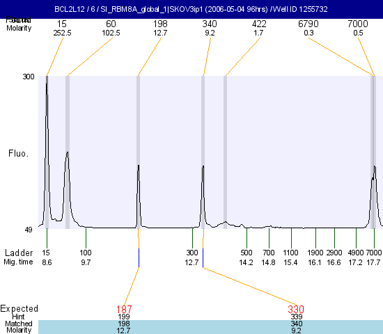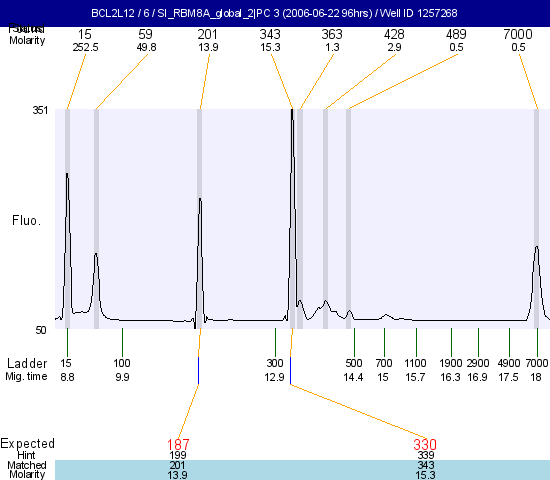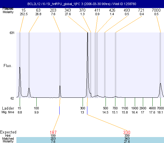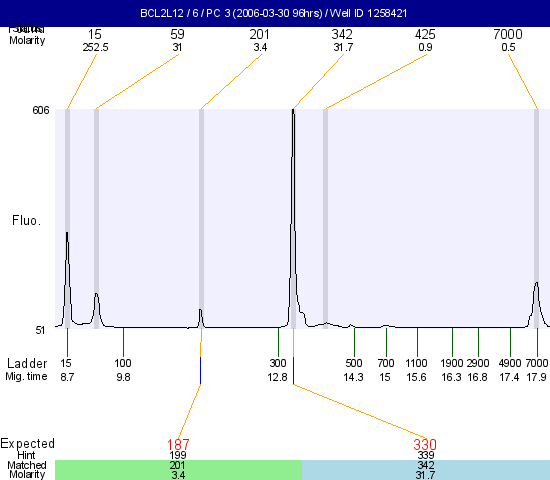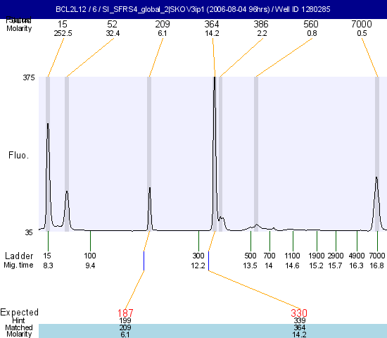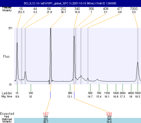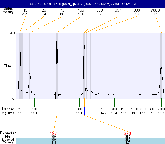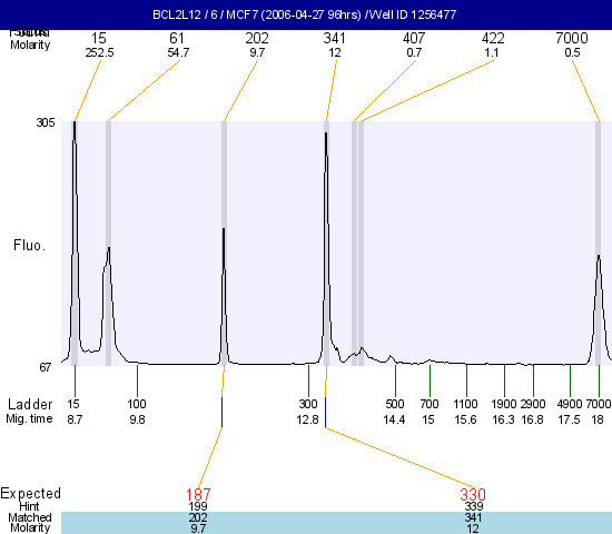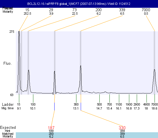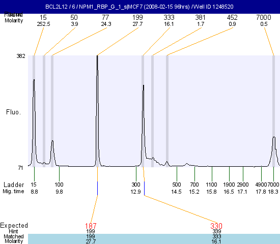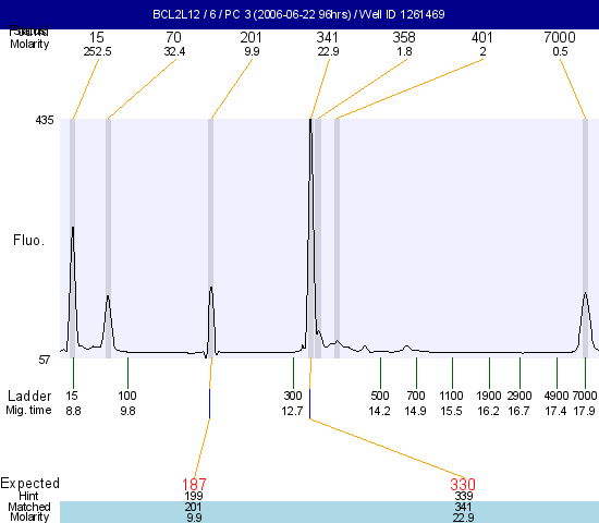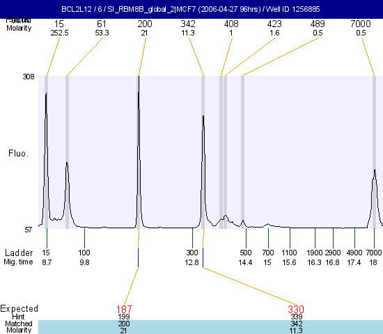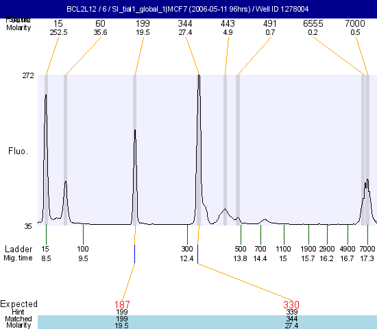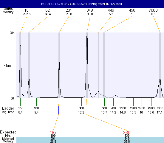 Fluorescence graphs : BCL2L12 / 6 / MCF7 (2006-05-11 96hrs) / Well ID 1277981