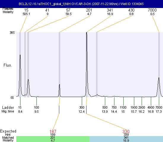 Fluorescence graphs : BCL2L12 / 6 / siTHOC1_global_1|NIH:OVCAR-3-OK (2007-11-22 96hrs) / Well ID 1334045