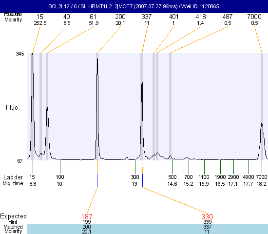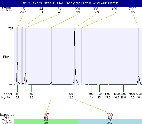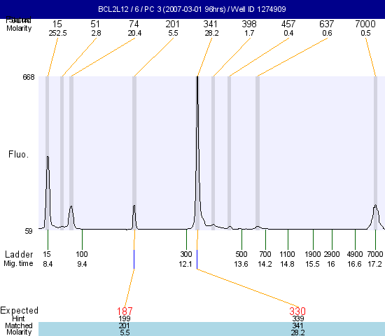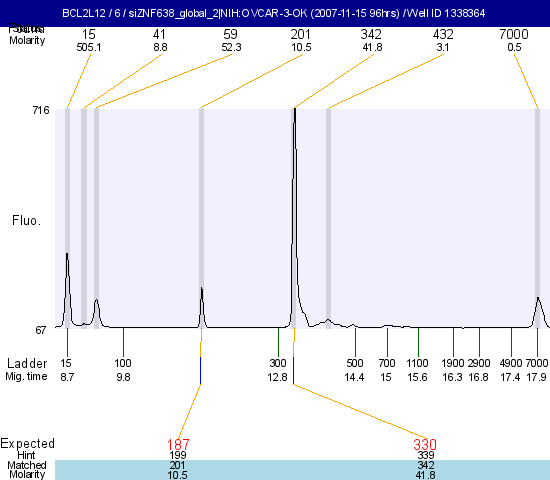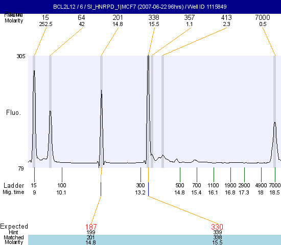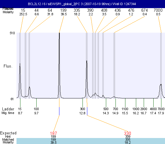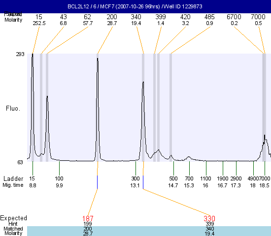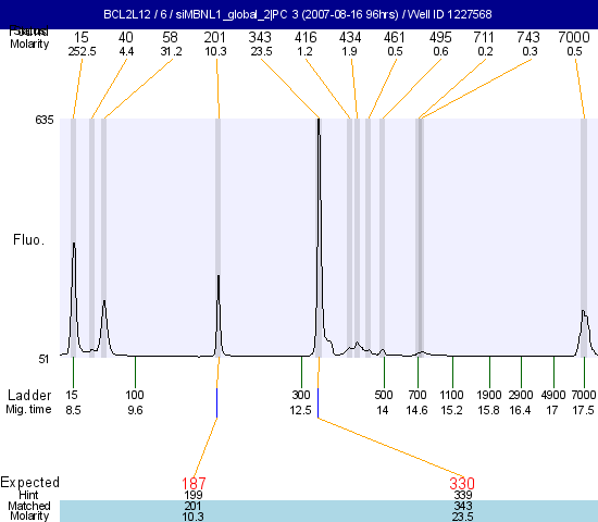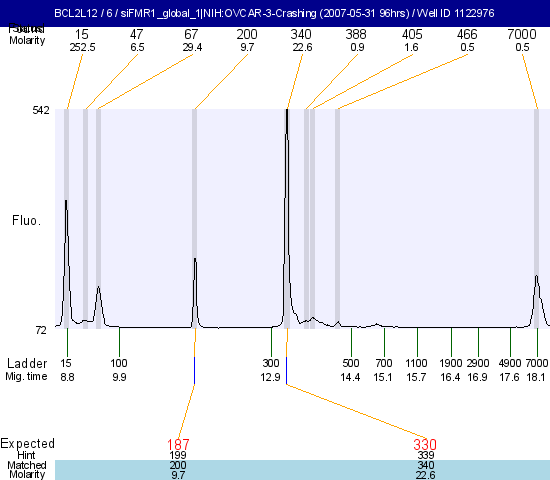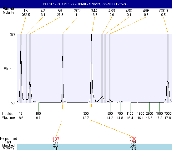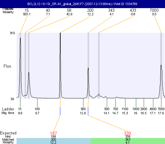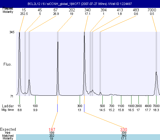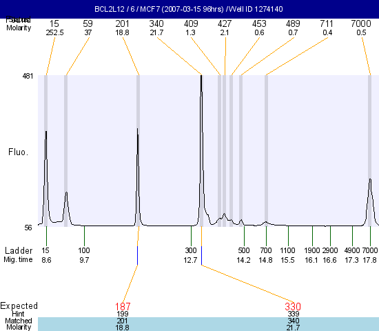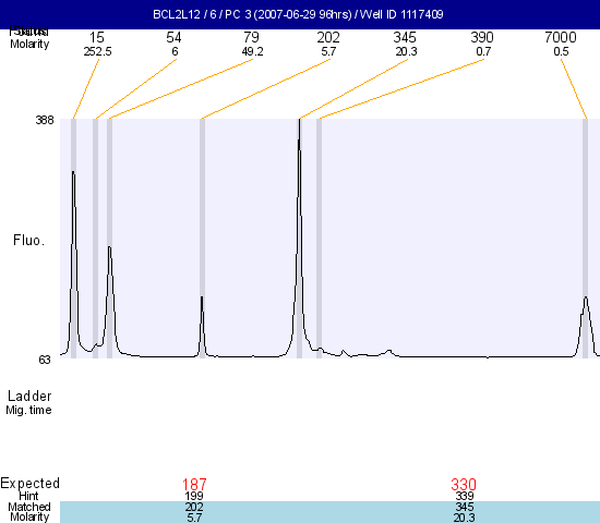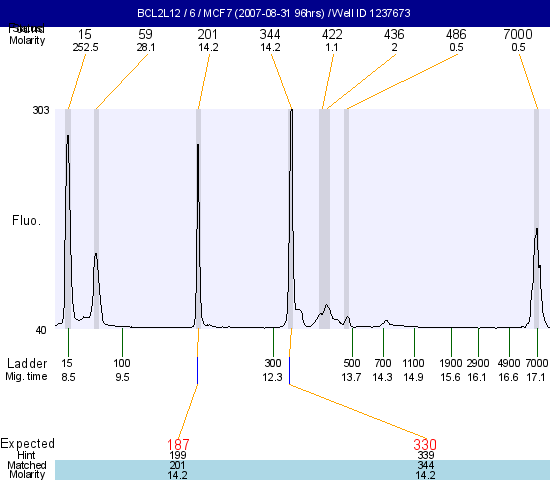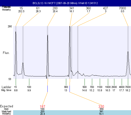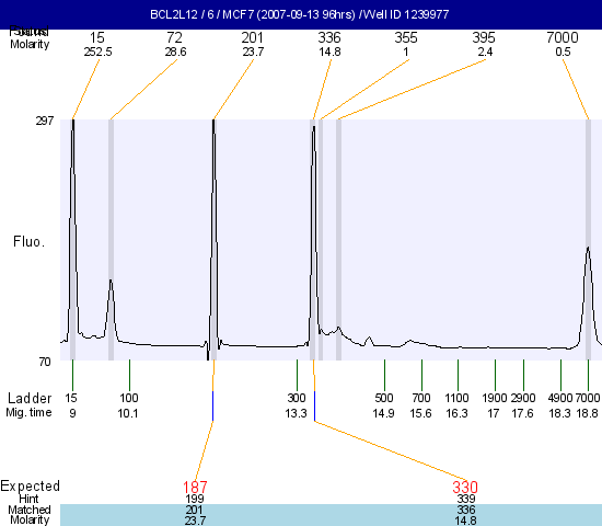 Fluorescence graphs : BCL2L12 / 6 / MCF7 (2006-12-07 96hrs) / Well ID 1338725