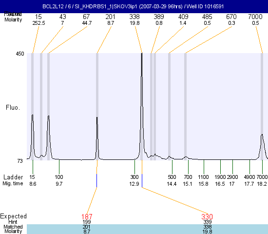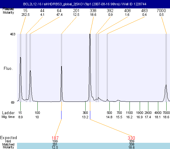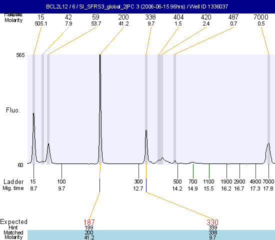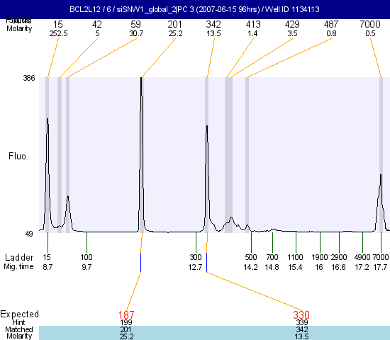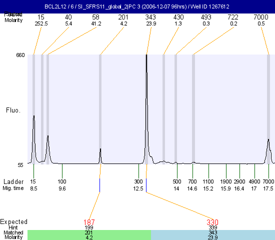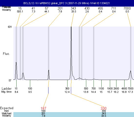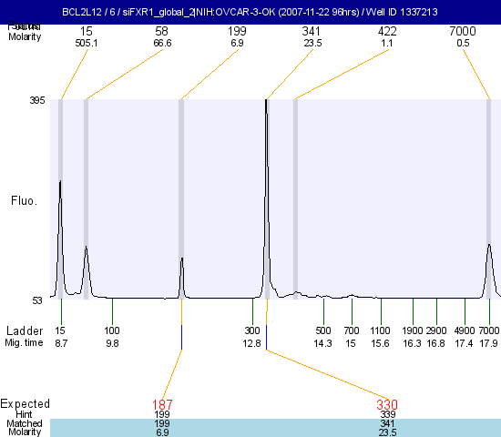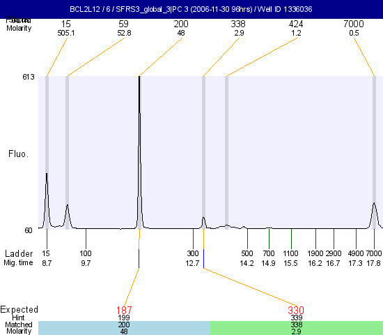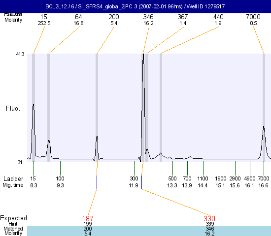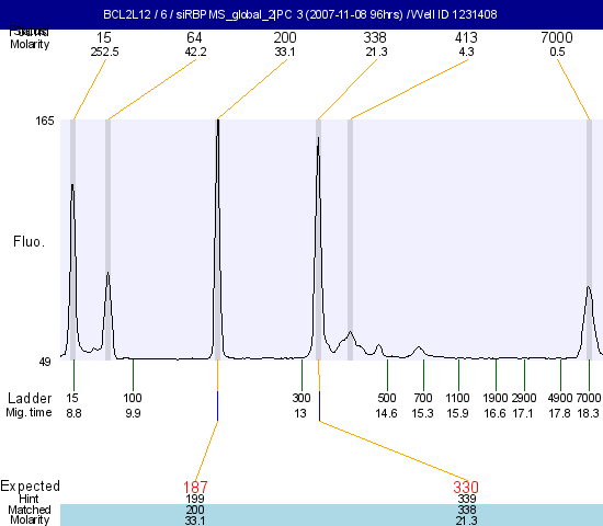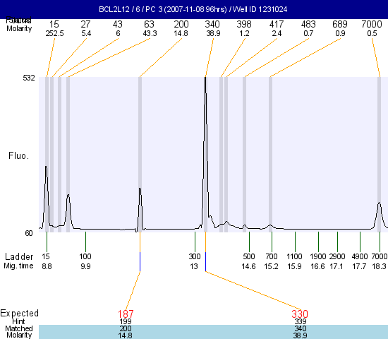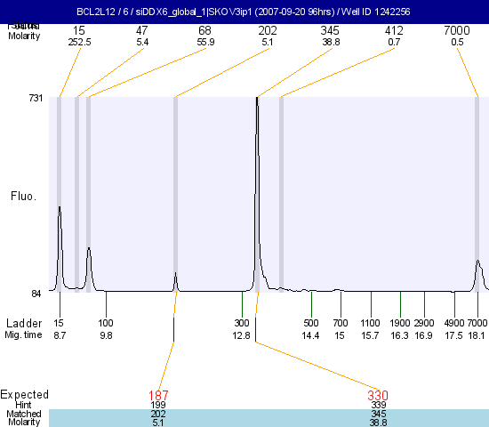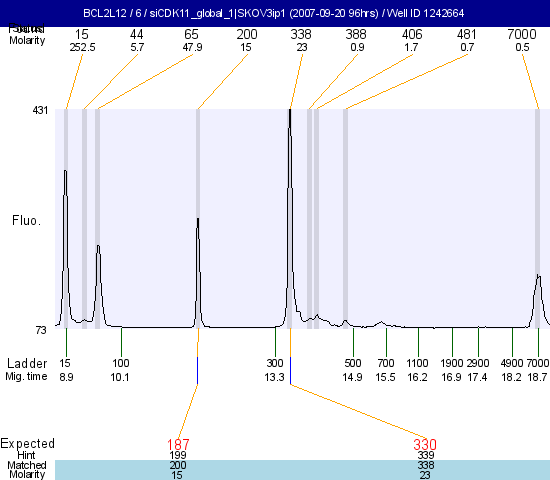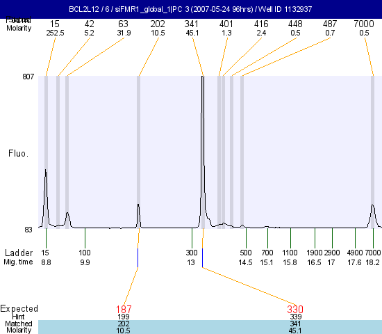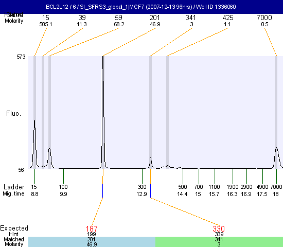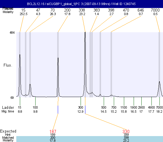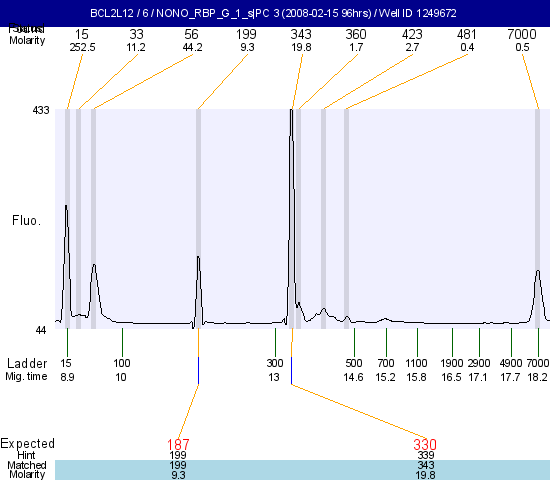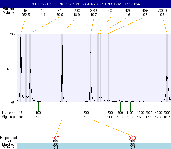 Fluorescence graphs : BCL2L12 / 6 / MCF7 (2006-12-07 96hrs) / Well ID 1338725