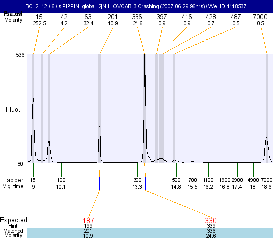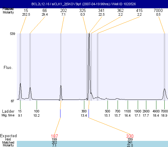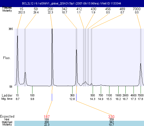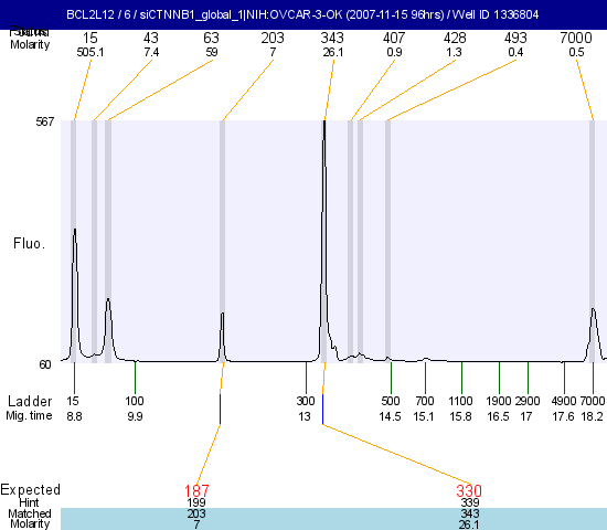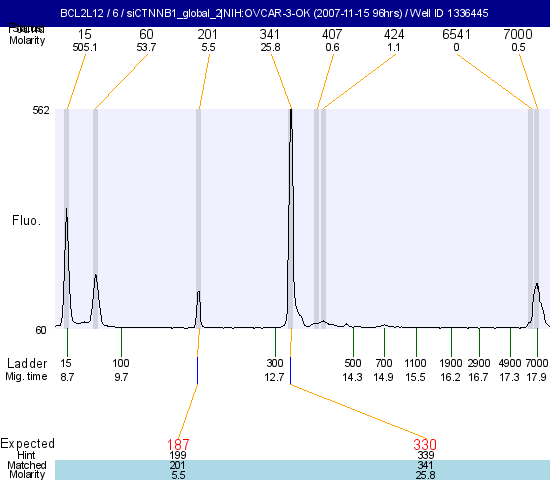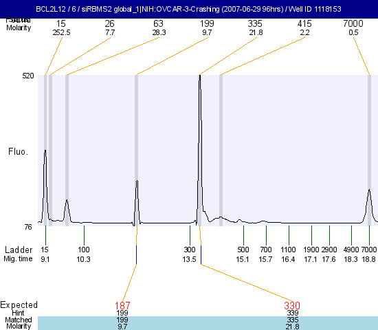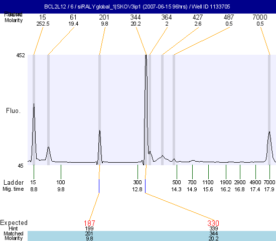 Fluorescence graphs : BCL2L12 / 6 / siSNW1_global_2|SKOV3ip1 (2007-06-15 96hrs) / Well ID 1133344