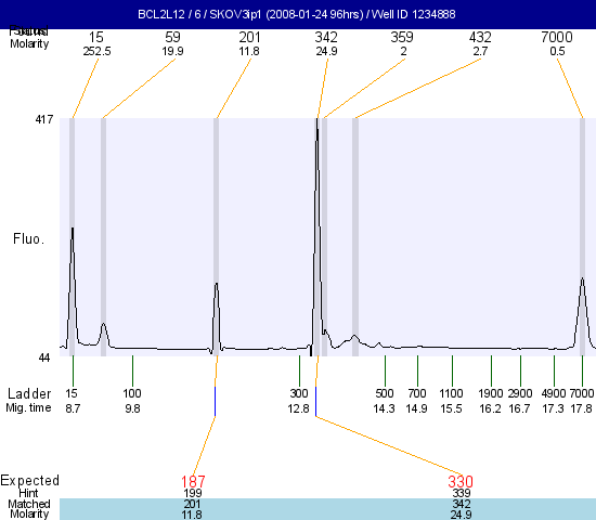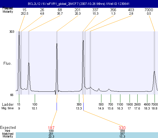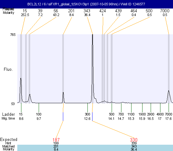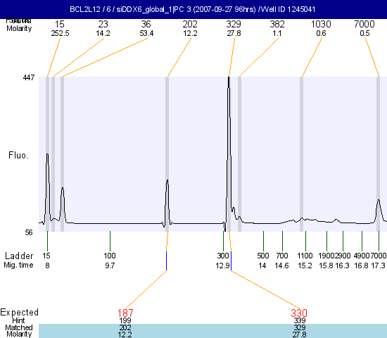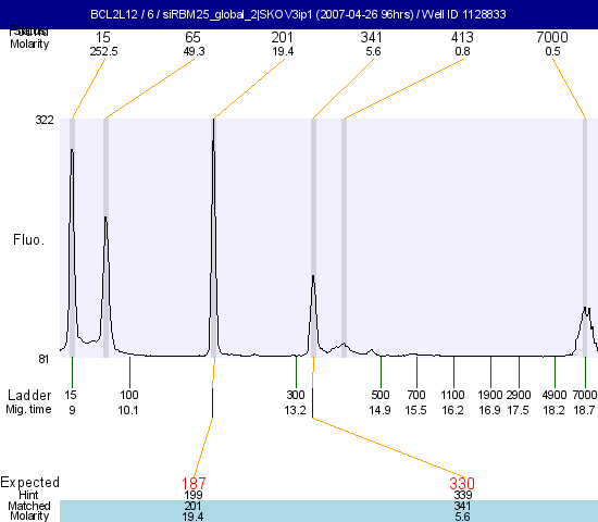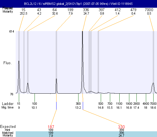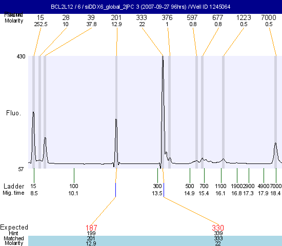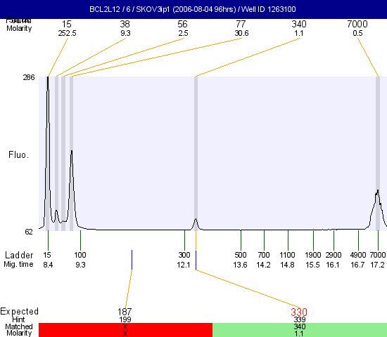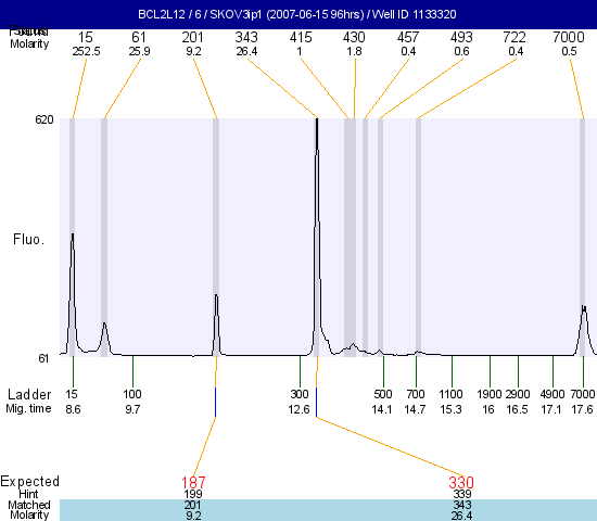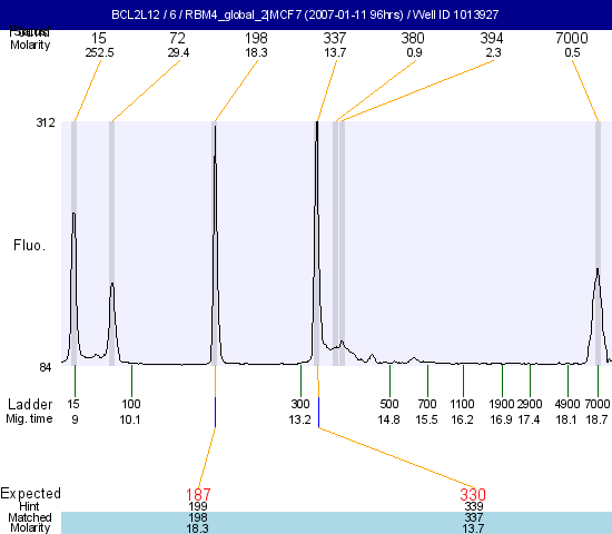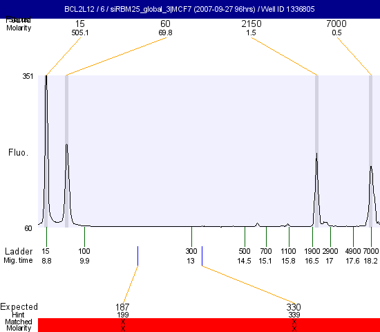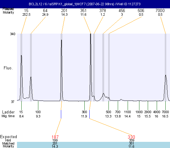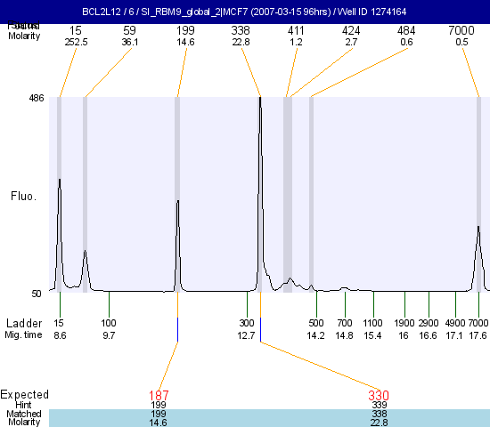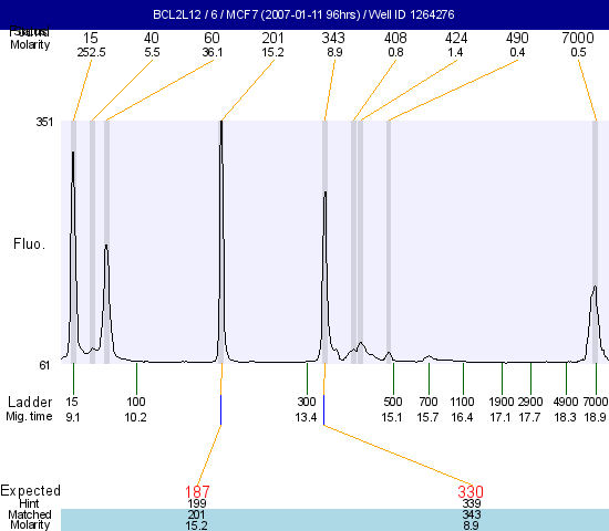 Fluorescence graphs : BCL2L12 / 6 / MCF7 (2007-01-11 96hrs) / Well ID 1264276