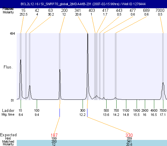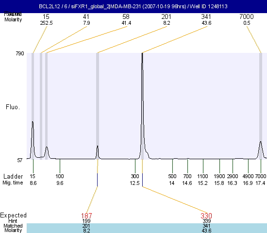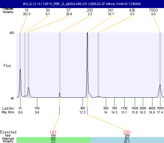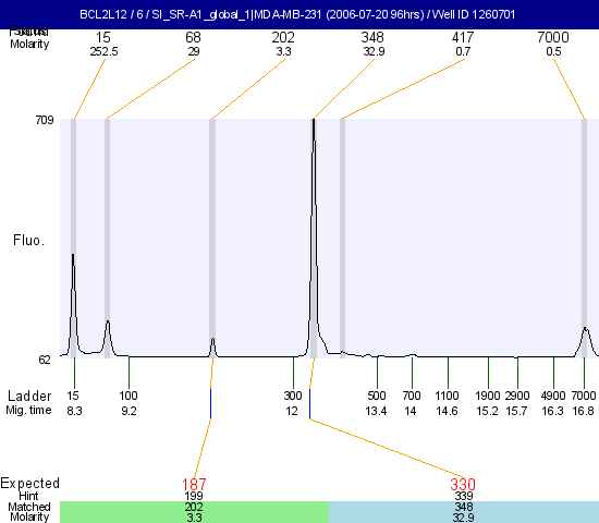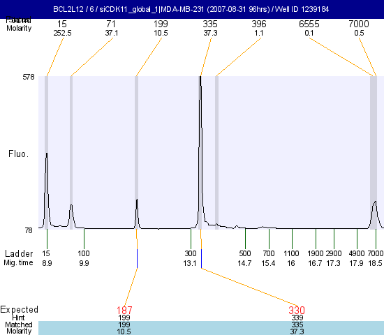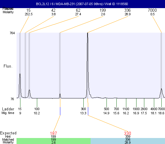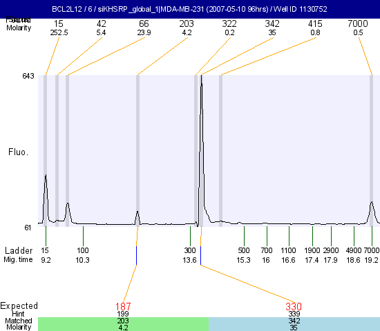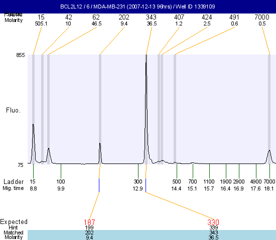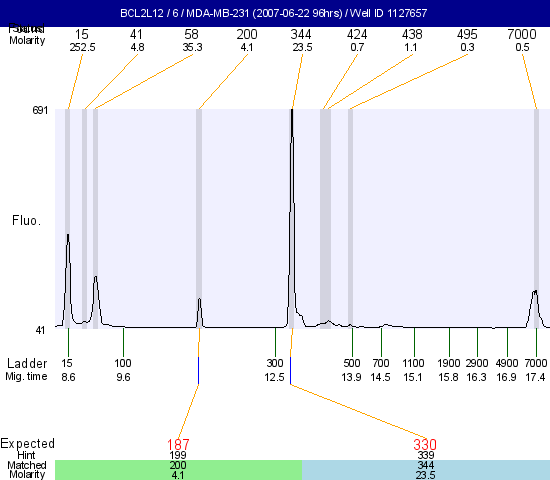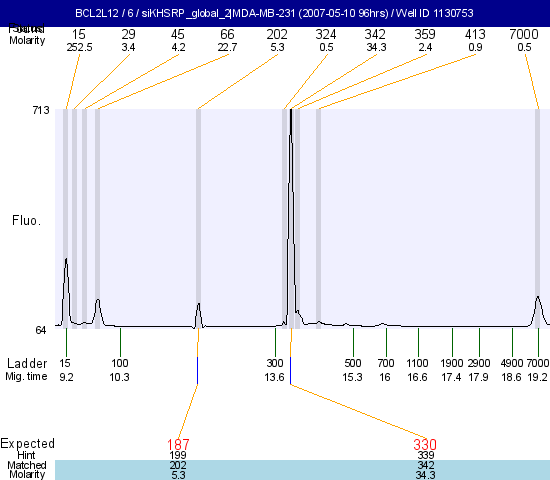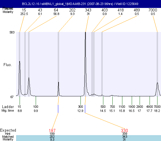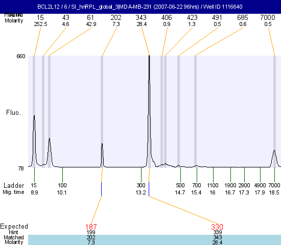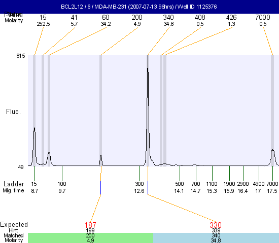 Fluorescence graphs : BCL2L12 / 6 / MDA-MB-231 (2007-05-24 96hrs) / Well ID 1131520