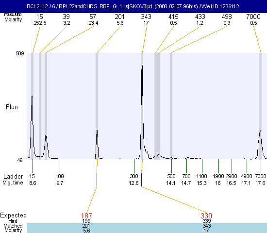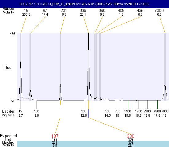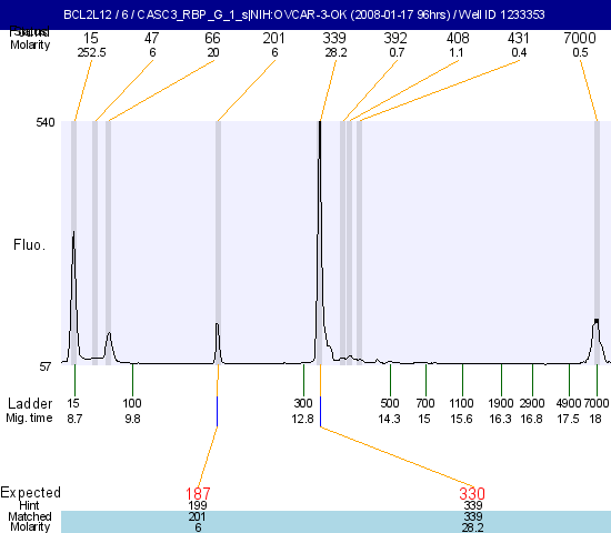 Fluorescence graphs : BCL2L12 / 6 / CASC3_RBP_G_s|NIH:OVCAR-3-OK (2008-01-17 96hrs) / Well ID 1233352