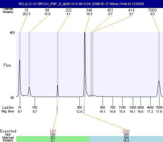 Fluorescence graphs : BCL2L12 / 6 / BRCA1_RBP_G_1_s|NIH:OVCAR-3-OK (2008-01-17 96hrs) / Well ID 1233329