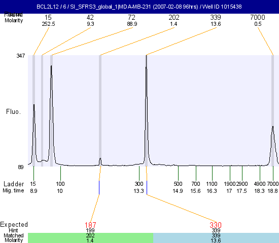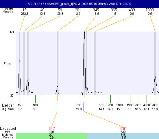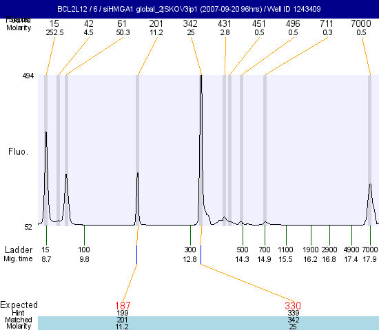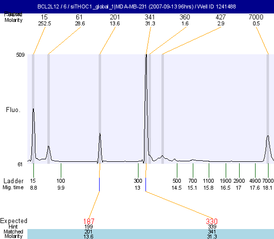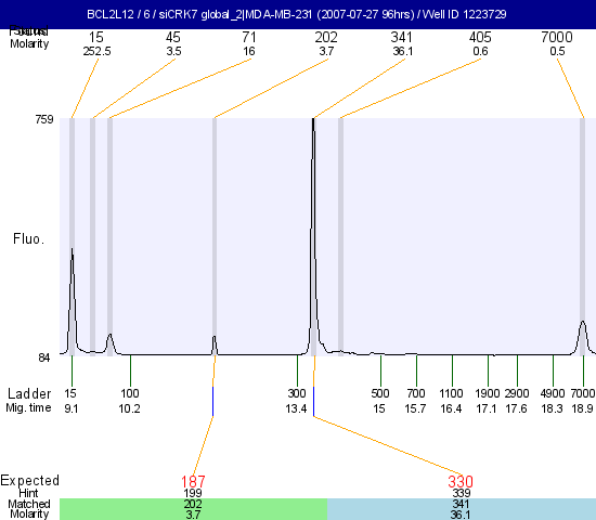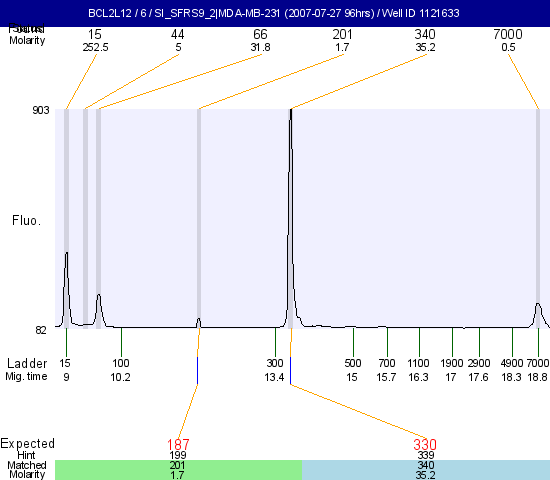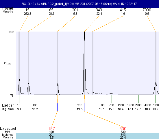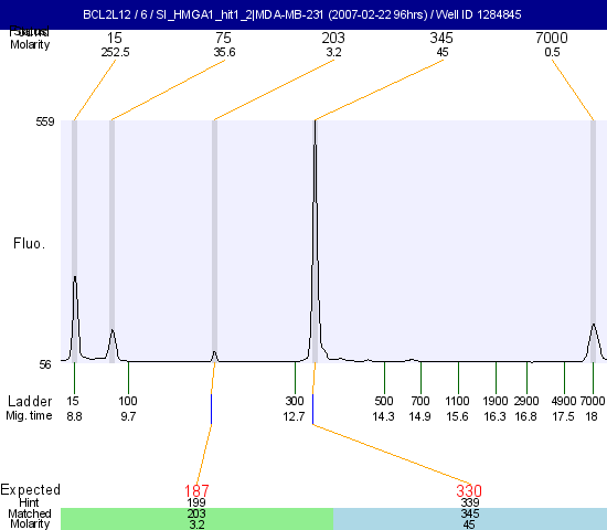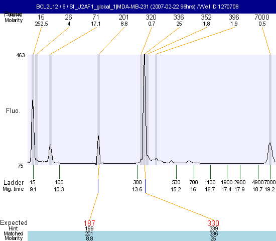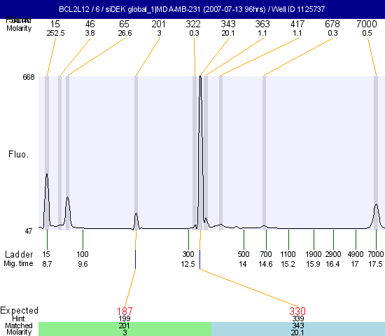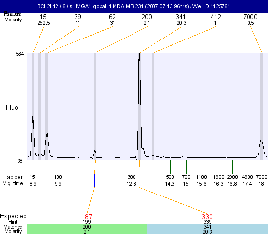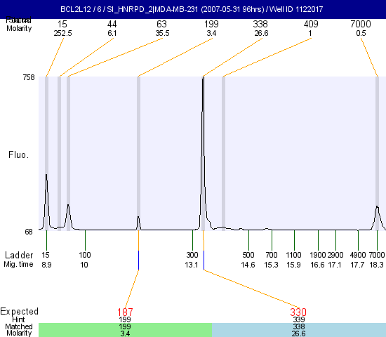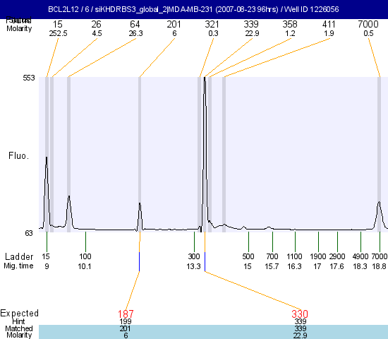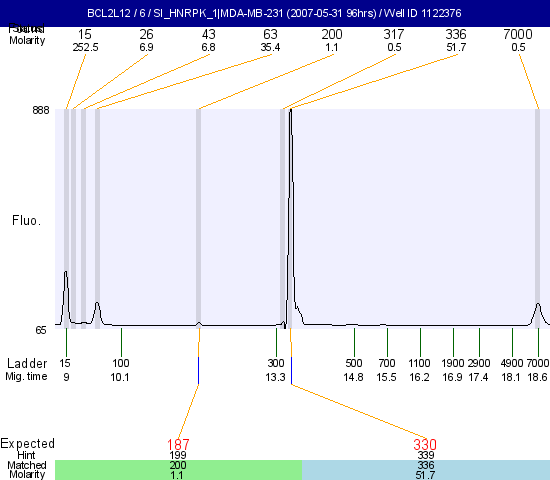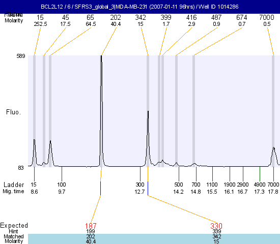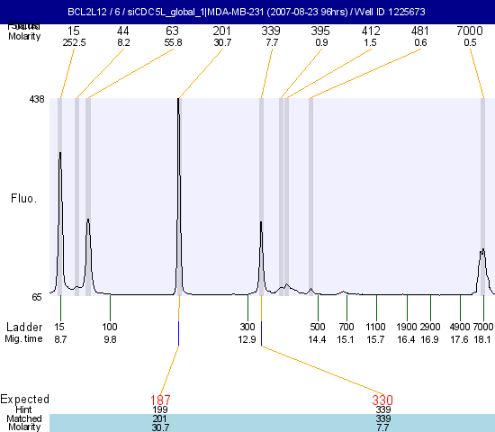 Fluorescence graphs : BCL2L12 / 6 / HNRPR_global_5_S|MDA-MB-231 (2007-07-27 96hrs) / Well ID 1121608