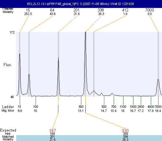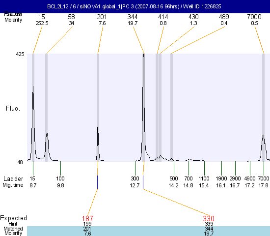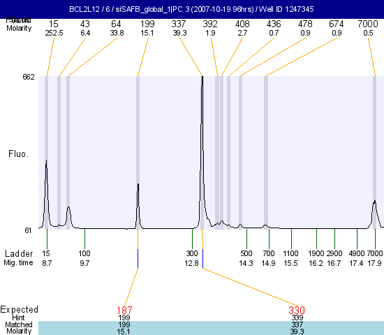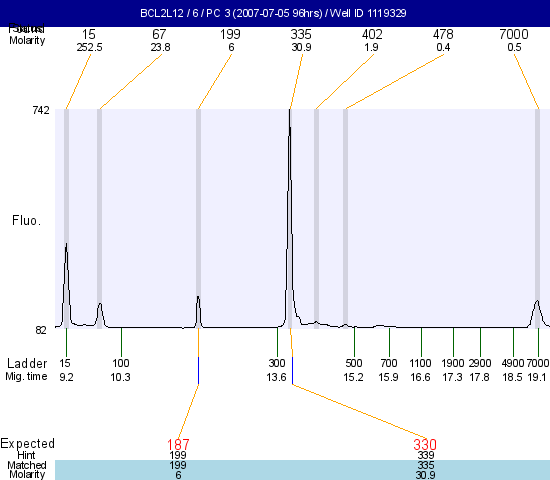 Fluorescence graphs : BCL2L12 / 6 / A2-1|PC 3 (2007-07-05 96hrs) / Well ID 1119713
