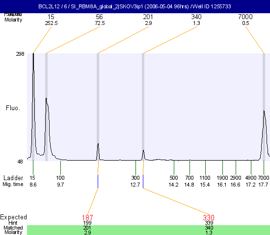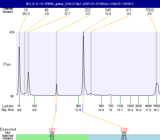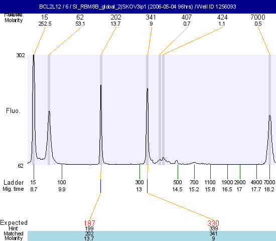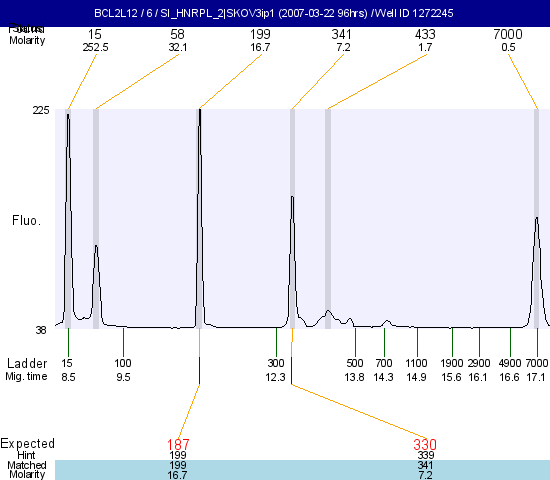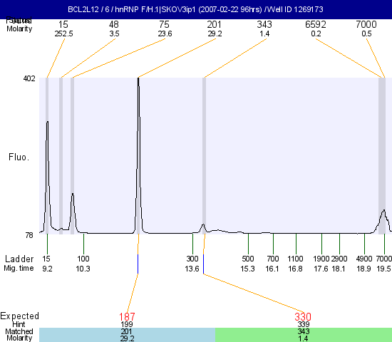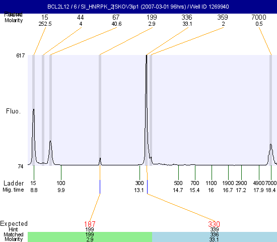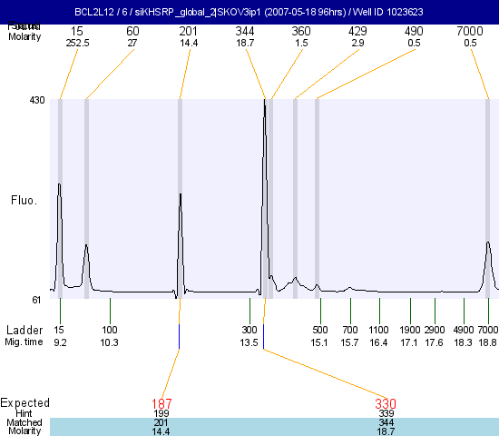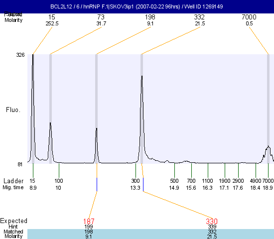 Fluorescence graphs : BCL2L12 / 6 / HNRPR_global_5_S|SKOV3ip1 (2007-03-22 96hrs) / Well ID 1272988