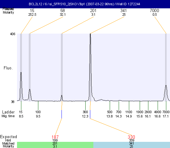Fluorescence graphs : BCL2L12 / 6 / si_SFRS10_1|SKOV3ip1 (2007-03-22 96hrs) / Well ID 1272221