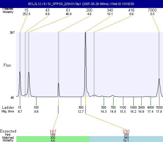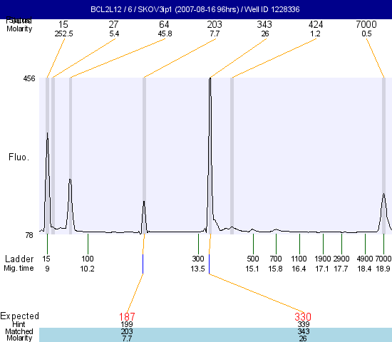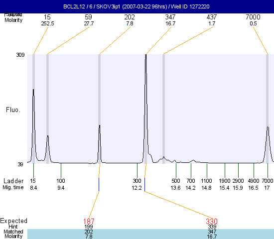 Fluorescence graphs : BCL2L12 / 6 / A2-3|SKOV3ip1 (2007-02-22 96hrs) / Well ID 1269148