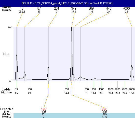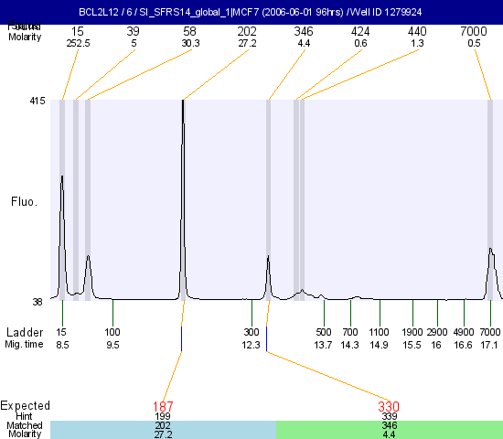 Fluorescence graphs : BCL2L12 / 6 / MCF7 (2006-06-01 96hrs) / Well ID 1279901