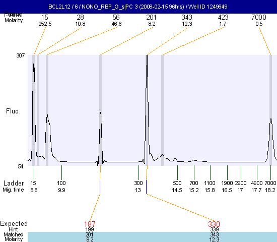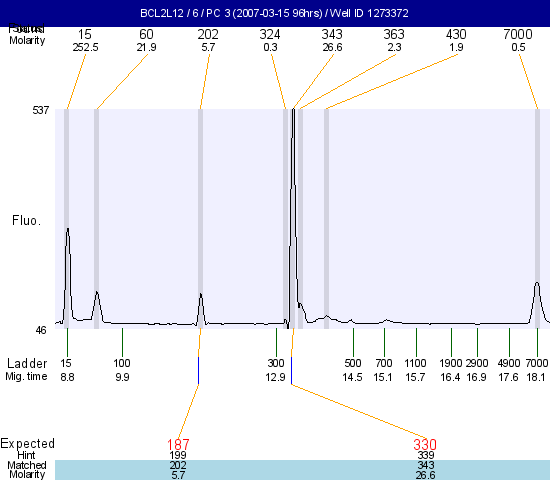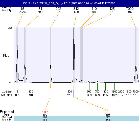 Fluorescence graphs : BCL2L12 / 6 / HEAB_RBP_G_1_s|PC 3 (2008-01-31 96hrs) / Well ID 1237672