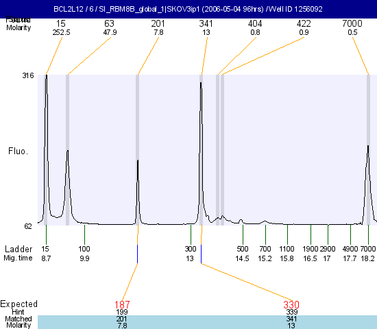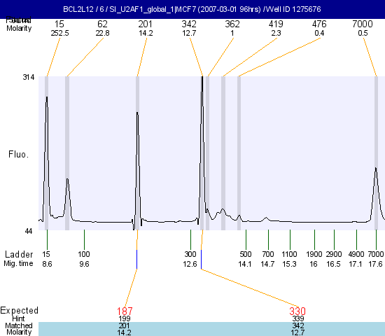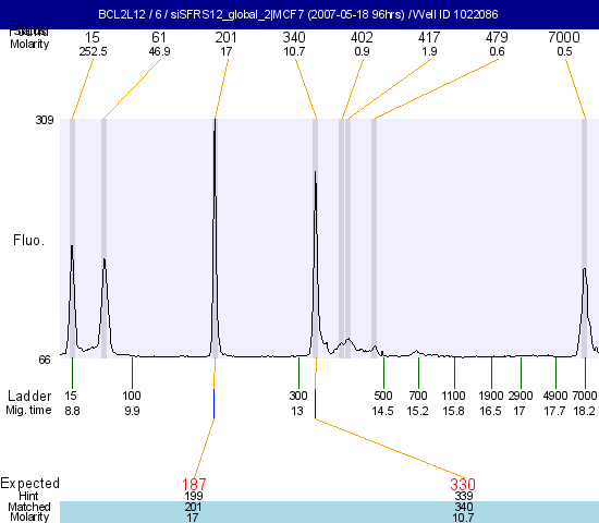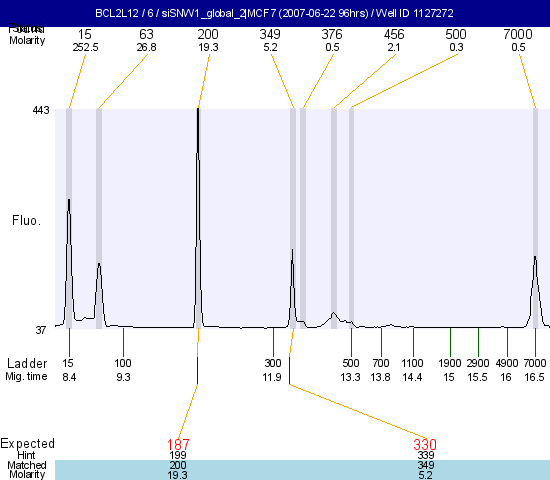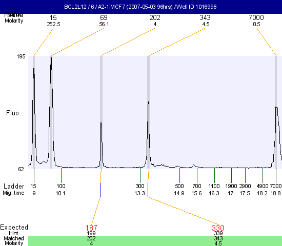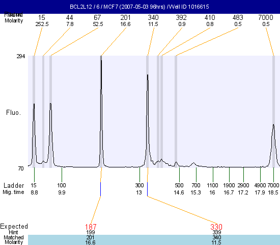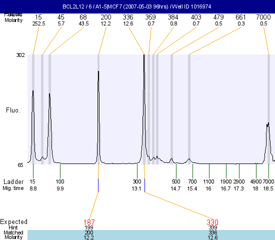 Fluorescence graphs : BCL2L12 / 6 / A2-1|MCF7 (2007-05-03 96hrs) / Well ID 1016998
