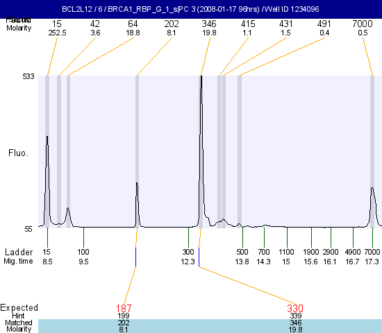 Fluorescence graphs : BCL2L12 / 6 / BRCA1_RBP_G_s|NIH:OVCAR-3-OK (2008-01-17 96hrs) / Well ID 1233328