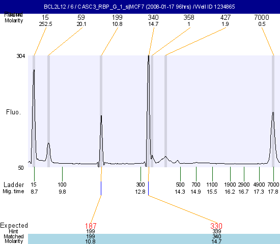 Fluorescence graphs : BCL2L12 / 6 / CASC3_RBP_G_1_s|MCF7 (2008-01-17 96hrs) / Well ID 1234865