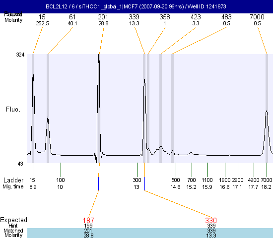 Fluorescence graphs : BCL2L12 / 6 / siTHOC1_global_1|MCF7 (2007-09-20 96hrs) / Well ID 1241873