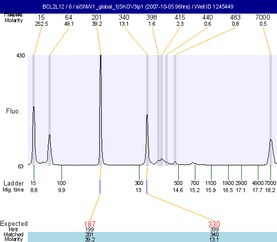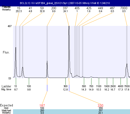 Fluorescence graphs : BCL2L12 / 6 / siSF3A3_global_1|SKOV3ip1 (2007-04-26 96hrs) / Well ID 1146718