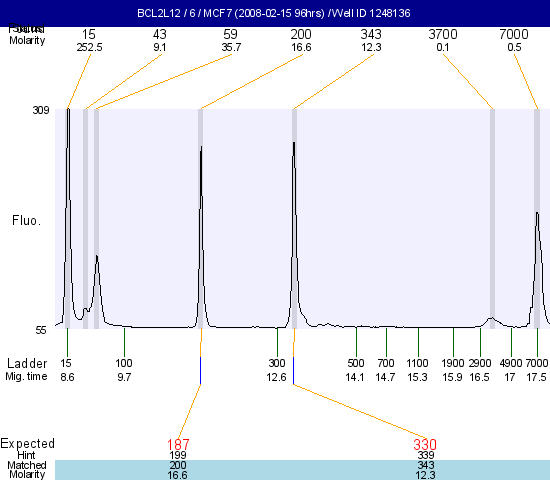 Fluorescence graphs : BCL2L12 / 6 / MCF7 (2008-02-15 96hrs) / Well ID 1248136