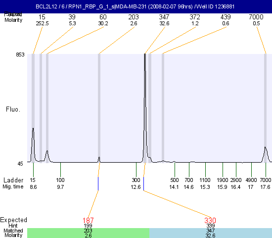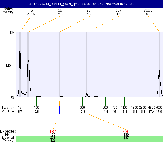 Fluorescence graphs : BCL2L12 / 6 / HEAB_RBP_G_1_s|MCF7 (2008-01-31 96hrs) / Well ID 1235273