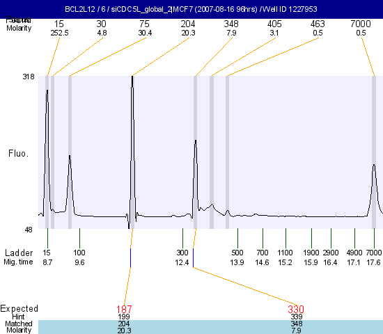 Fluorescence graphs : BCL2L12 / 6 / MCF7 (2007-08-16 96hrs) / Well ID 1227569