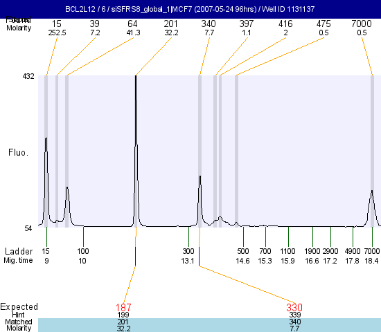 Fluorescence graphs : BCL2L12 / 6 / siSFRS8_global_1|MCF7 (2007-05-24 96hrs) / Well ID 1131137