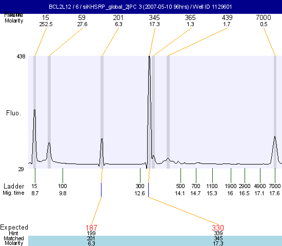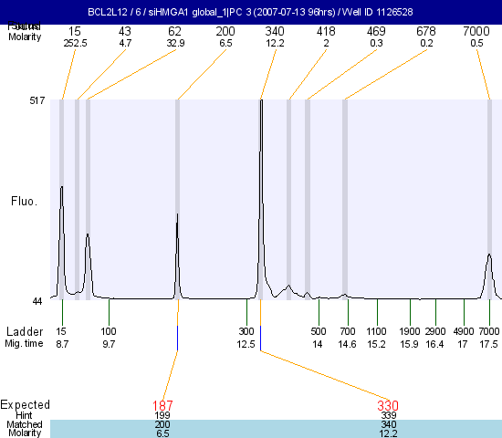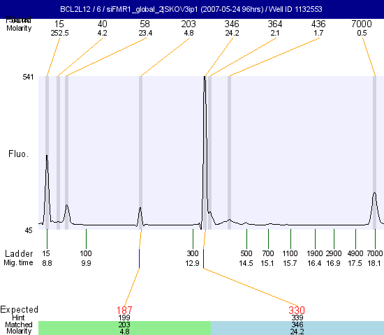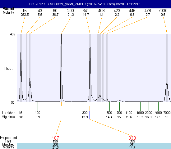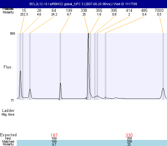 Fluorescence graphs : BCL2L12 / 6 / MCF7 (2007-05-24 96hrs) / Well ID 1131112