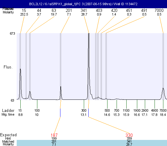 Fluorescence graphs : BCL2L12 / 6 / siSRPK1_global_1|PC 3 (2007-06-15 96hrs) / Well ID 1134472