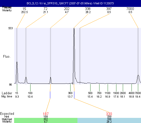 Fluorescence graphs : BCL2L12 / 6 / si_SFRS10_2|MCF7 (2007-07-05 96hrs) / Well ID 1120096
