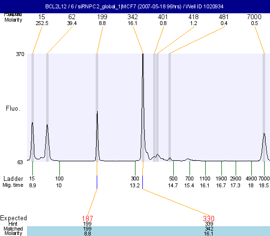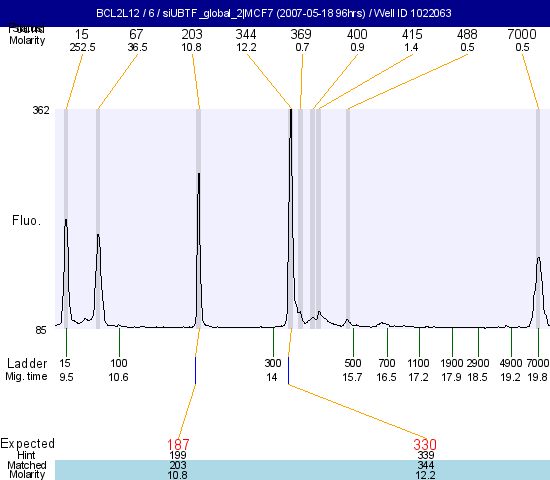 Fluorescence graphs : BCL2L12 / 6 / MCF7 (2007-05-18 96hrs) / Well ID 1020910