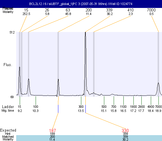 Fluorescence graphs : BCL2L12 / 6 / siUBTF_global_1|MCF7 (2007-05-18 96hrs) / Well ID 1022062