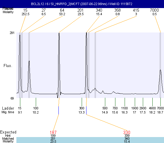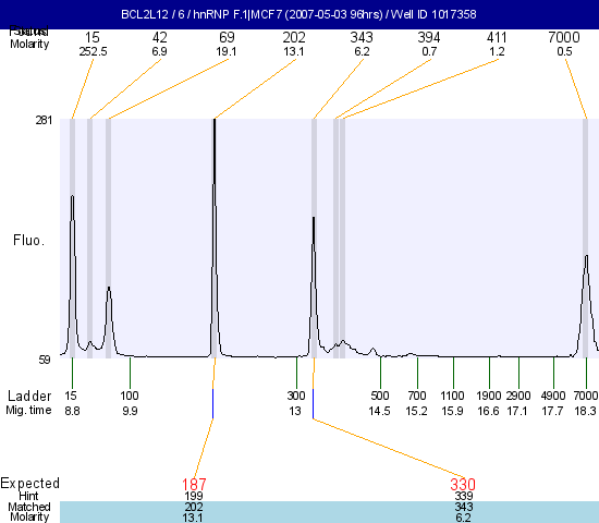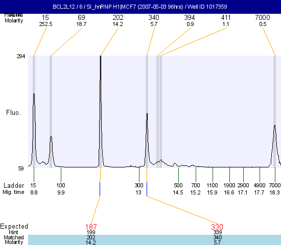 Fluorescence graphs : BCL2L12 / 6 / HNRPR_global_5_S|MCF7 (2007-08-16 96hrs) / Well ID 1123720