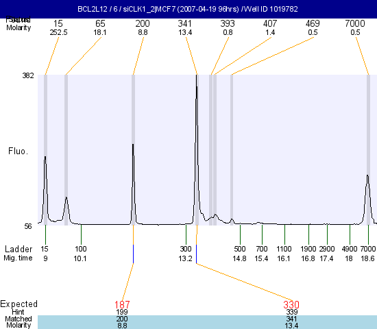 Fluorescence graphs : BCL2L12 / 6 / A1-5|MCF7 (2007-05-03 96hrs) / Well ID 1016974