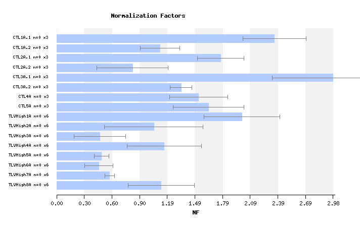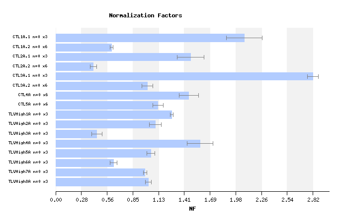 QPCR Relative Expression Quantification (TLV-High-1 Anterior) : NF pairwise ratio map: RPL13A.qoa.F2 RPL13A.qoa.R2 only