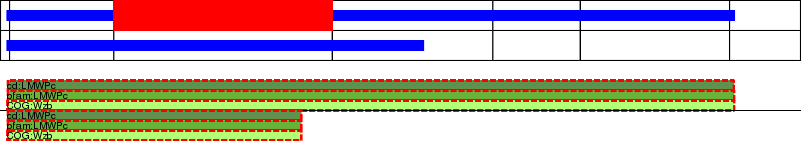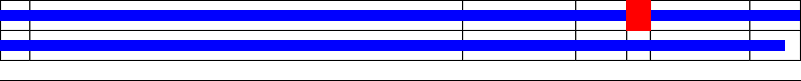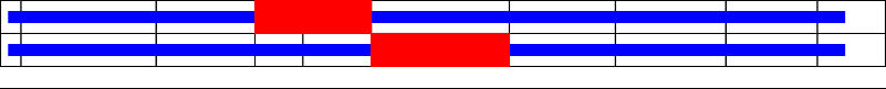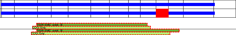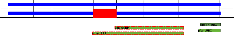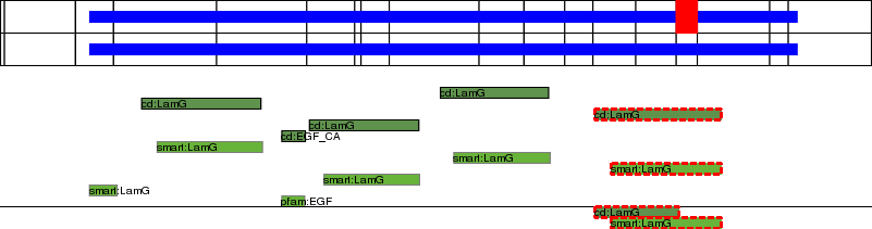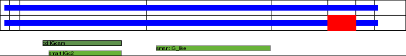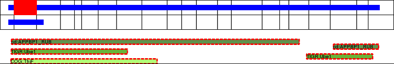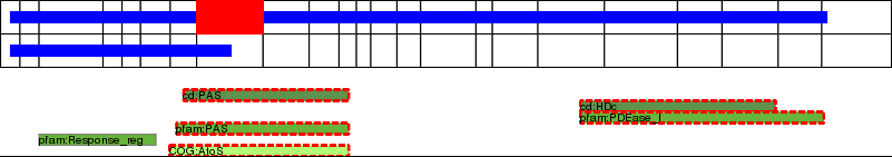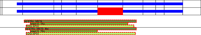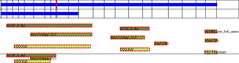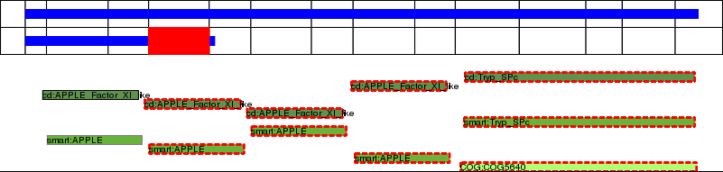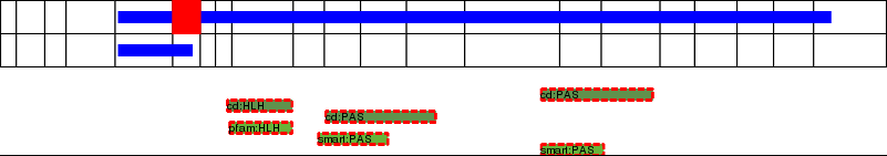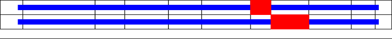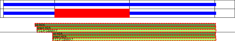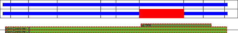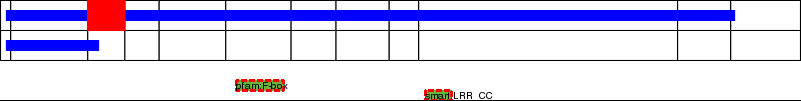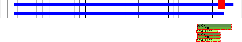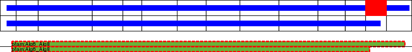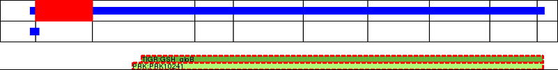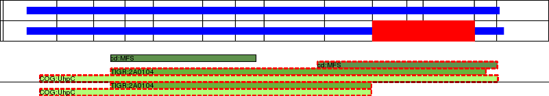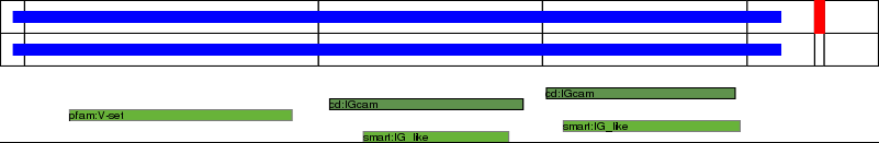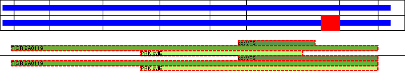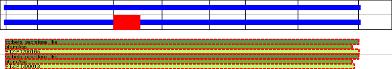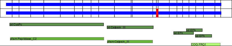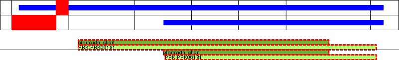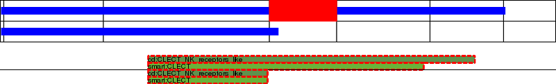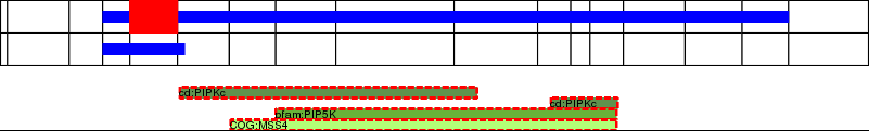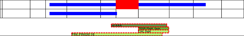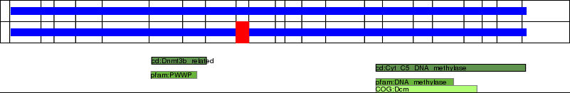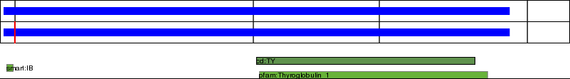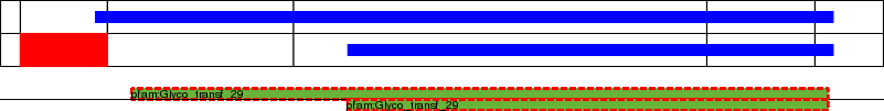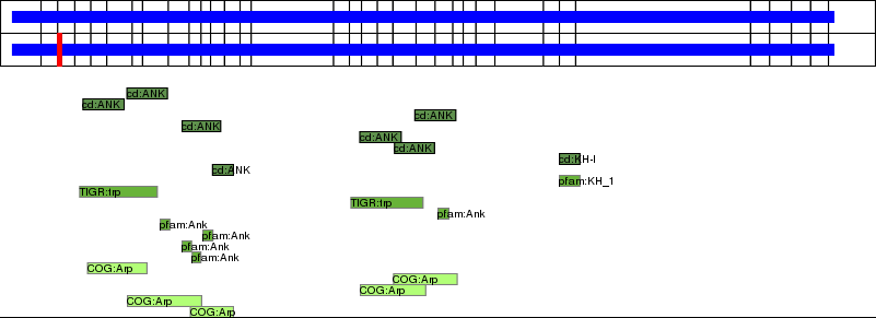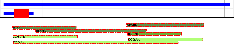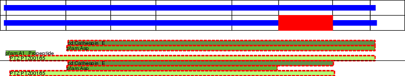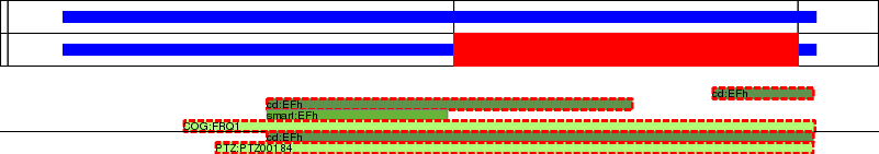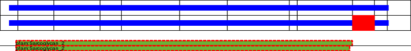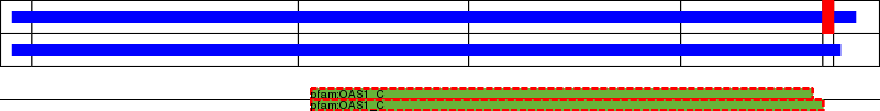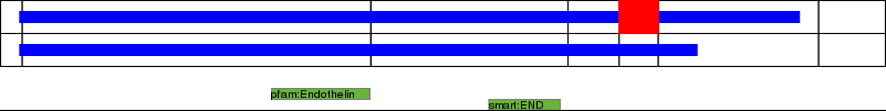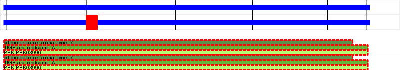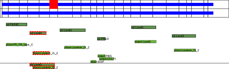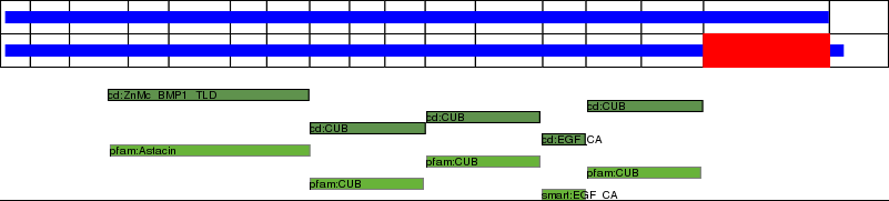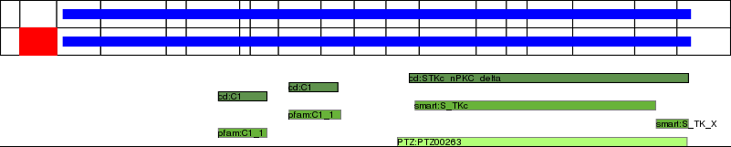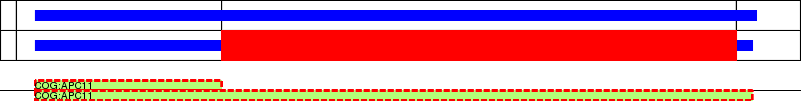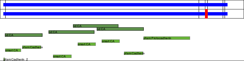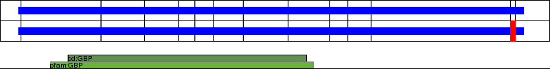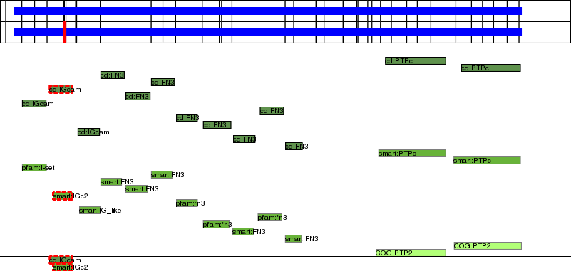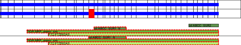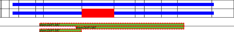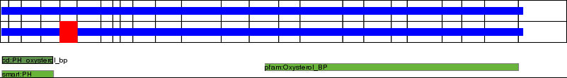 This page contains ASEs represented as a graph of the mRNA exonic structure mapped to the protein primary sequence. Exons are shown in white with black outline. The reference form is represented above the alternative form. Coding regions are shown with blue horizontal bars. These can be interrupted by red blocks for absent regions. Below are the domains in the protein obtained from NCBI's Conserved Domain Database. Domains that are affected by the ASE are outlined in red.
