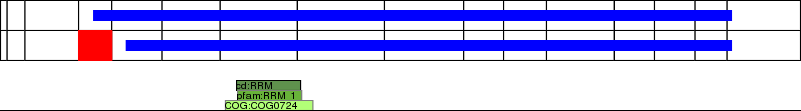 RRM (RNA recognition motif), also known as RBD (RNA binding domain) or RNP (ribonucleoprotein domain), is a highly abundant domain in eukaryotes found in proteins involved in post-transcriptional gene expression processes including mRNA and rRNA processing, RNA export, and RNA stability. This domain is 90 amino acids in length and consists of a four-stranded beta-sheet packed against two alpha-helices. RRM usually interacts with ssRNA, but is also known to interact with ssDNA as well as proteins. RRM binds a variable number of nucleotides, ranging from two to eight. The active site includes three aromatic side-chains located within the conserved RNP1 and RNP2 motifs of the domain. The RRM domain is found in a variety heterogeneous nuclear ribonucleoproteins (hnRNPs), proteins implicated in regulation of alternative splicing, and protein components of small nuclear ribonucleoproteins (snRNPs).