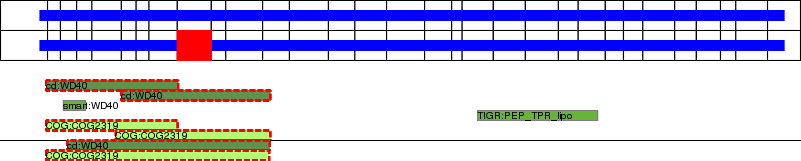 WD40 repeats. Note that these repeats are permuted with respect to the structural repeats (blades) of the beta propeller domain.