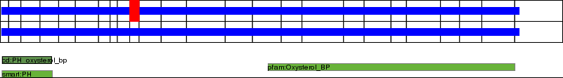 Pleckstrin homology domain. Domain commonly found in eukaryotic signalling proteins. The domain family possesses multiple functions including the abilities to bind inositol phosphates, and various proteins. PH domains have been found to possess inserted domains (such as in PLC gamma, syntrophins) and to be inserted within other domains. Mutations in Brutons tyrosine kinase (Btk) within its PH domain cause X-linked agammaglobulinaemia (XLA) in patients. Point mutations cluster into the positively charged end of the molecule around the predicted binding site for phosphatidylinositol lipids.